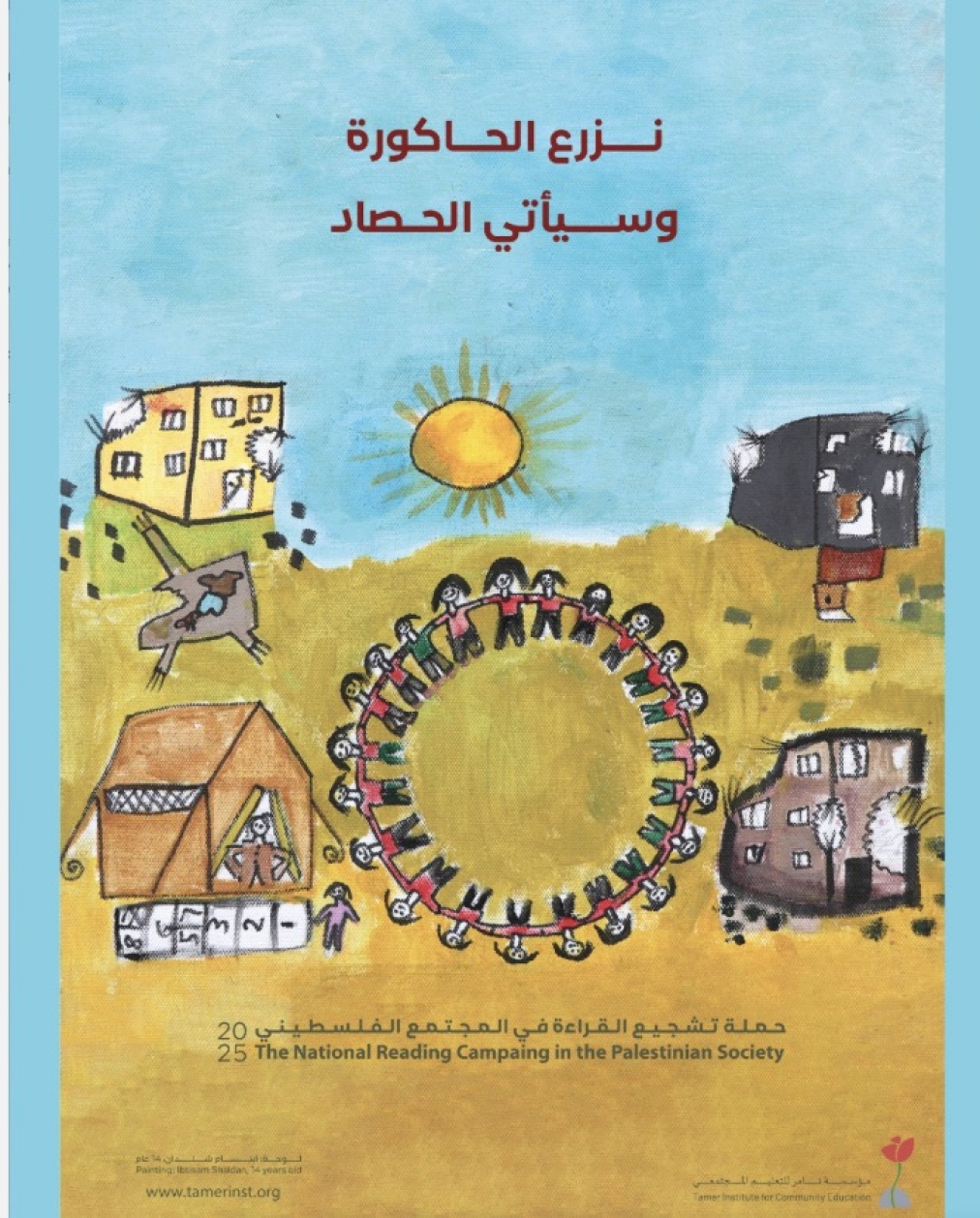 This war targets not only the Palestinian body but also seeks to uproot its memory, institutions, and future—by striking at the heart of childhood itself. In this context, the Tamer Institute launches the 2025 Reading Campaign, drawing inspiration from the slogan and illustrations created by children in Gaza during the genocide: "We Sow the Field, and the Harvest Sall Come.